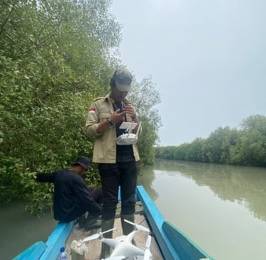 Salah satu terobosan penting dalam kegiatan ini adalah pemanfaatan drone atau UAV untuk melakukan pemetaan spasial kawasan mangrove. Teknologi ini memungkinkan tim ITERA memperoleh citra udara secara detail, cepat, dan akurat—sebuah keunggulan yang sulit dicapai melalui metode pemetaan konvensional.