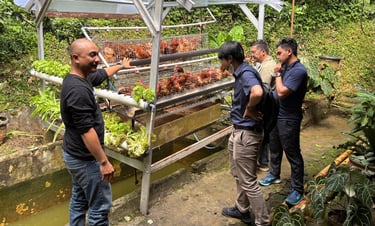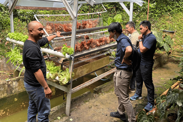 Salah satu aspek utama dari kunjungan ini adalah pemahaman tentang integrasi farming, yaitu konsep pertanian yang menggabungkan berbagai elemen seperti pertanian, peternakan, dan kehutanan untuk menciptakan ekosistem yang lebih produktif dan berkelanjutan. Dalam program ini, peternakan ayam penghasil telur omega menjadi salah satu contoh sukses, di mana ayam yang dipelihara tidak hanya menghasilkan telur berkualitas tinggi tetapi juga berperan dalam mendukung keberlanjutan lingkungan. Selain itu, budidaya lele dan magot juga menjadi bagian dari pendekatan sirkular yang sangat efisien, di mana magot digunakan sebagai pakan alami untuk lele dan ayam, mengurangi limbah organik yang tidak terpakai dan menciptakan siklus produksi yang lebih ramah lingkungan.