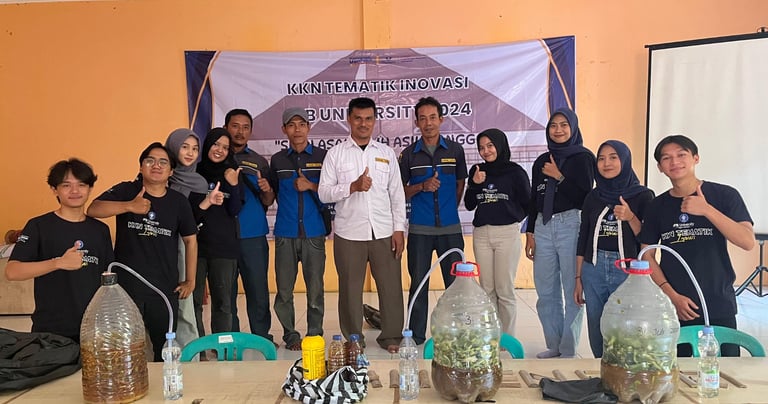 Di bawah bimbingan Naufal dan timnya, para peserta diajak memahami proses pembuatan POC, mulai dari mengumpulkan sisa-sisa makanan, sayur, dan buah, hingga mencampurkannya dengan molase atau larutan gula aren serta cairan EM4 untuk kemudian difermentasi selama 30 hari. Para ibu-ibu PKK dan anggota KWT, yang biasanya akrab dengan aktivitas memasak sehari-hari, tampak antusias mengikuti setiap langkah. Bagi mereka, ini bukan hanya sekadar belajar membuat pupuk, tetapi juga sebuah langkah kecil untuk menjaga bumi bagi generasi mendatang.
